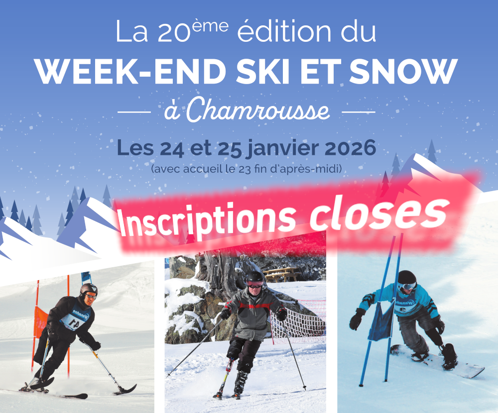La 20ème édition, WE de ski à Chamrousse aura lieu les 24 et 25 janvier 2026 avec un accueil le vendredi 23 en fin d'après-midi. Les inscriptions sont closes L'hébergement aura lieu à la Bérangère en demi-pension au prix de 180 € pour les amputéset de 210 € pour les...