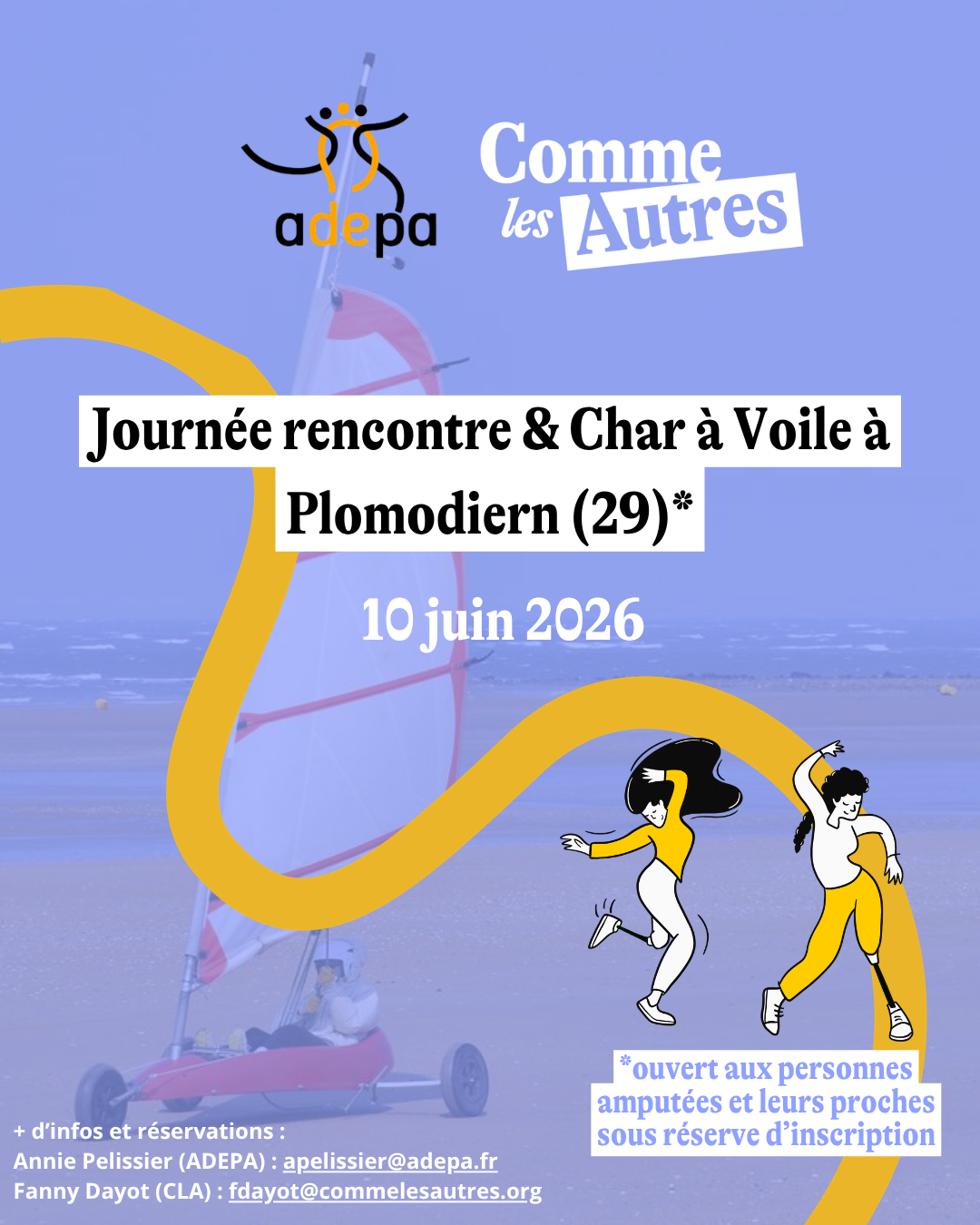 L’ADEPA en partenariat avec l'association "Comme les autres" vous propose une journée conviviale et dynamique au grand air, le 10 juin 2026, sur la magnifique plage de Lestrevet à Plomodiern, dans le Finistère. Au programme : rencontres, échanges...